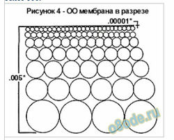 Обратноосмотическая полупроницаемая мембрана представляет собой композитный полимер неравномерной плотности. Этот полимер образован из двух слоев, неразрывно соединенных между собой. Наружный очень плотный барьерный слой толщиной около 10 миллионных см лежит на менее плотном пористом слое, толщина которого составляет пять тысячных см. Осмотическая мембрана действует как барьер для всех растворенных солей и неорганических молекул, а также органических молекул с молекулярной массой более 100.