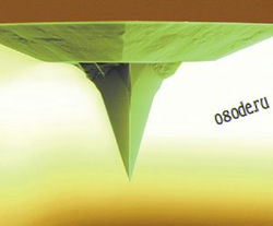 Рисунок ниже. Остриё микро-зонда (верх, взято из Scientific American, 2001, Sept, p. 32.) и принцип работы сканирующего зондового микроскопа (взято из www.nanometer.ru/2007/06/06/atomno_silovaa_mikroskopia_2609.html#). Пунктиром показан ход луча лазера.