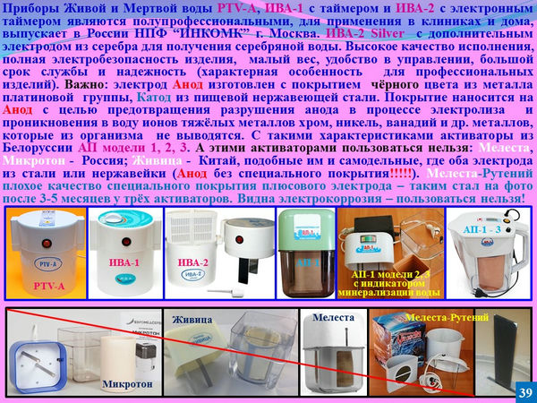 Если у активатора электроды с обычной нержавейки или стали, как пишут, то нельзя ими пользоваться - это Мелесты ранних выпусков, Микротон, Живица - Китай