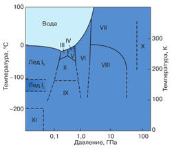 Рис. 2. Фазовая диаграмма кристаллического льда.