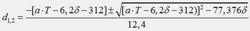 где a = 6,2; b = αT – 6,2δ – 312; c = 312δ.